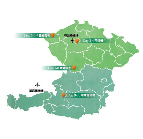 - 一次收藏四座世界遺產:「世界最美小鎮」哈爾施塔特、「玫瑰之城」庫倫洛夫、「溫泉之都」卡羅維瓦利、「千塔之城」布拉格。