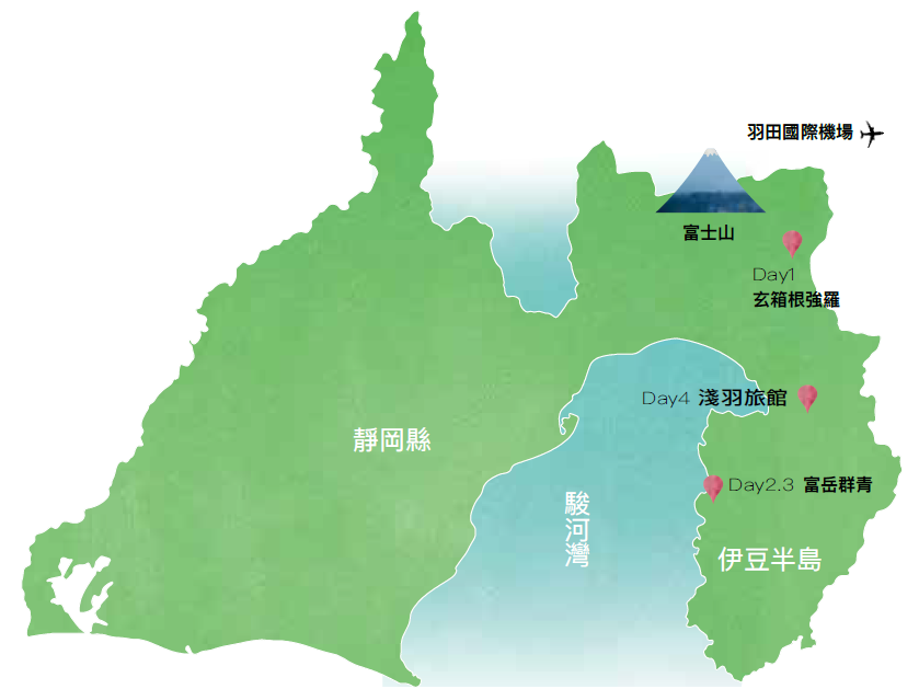 玄箱根強羅→箱根登山纜車→山之飯店→箱根海賊船→富岳群青