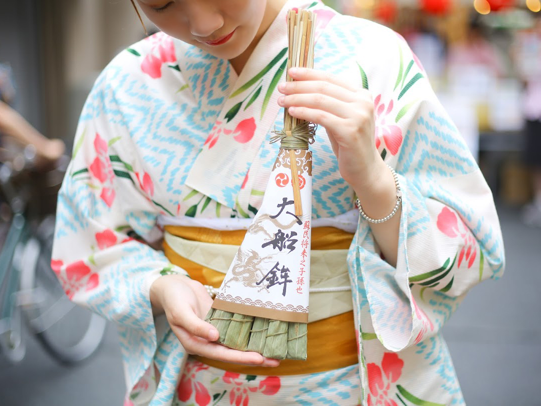 祇園祭的祭祀活動大致分為八坂神社主辦和山鉾町主辦。一般來說,山鉾町主辦的活動通常被稱為「祗園祭」。漫步山鉾町,您可近距離觀賞山鉾,享受這段期間特有的樂趣。此外,還可購買各山鉾町手工製作的「粽子」,祇園祭上隨處可見的「粽子」,這不是食物,而是用竹葉做成、用來驅除災難瘟疫的護符「CHIMAKI」。大部分的山鉾只要購買粽子等授予品或搭乘券,即可搭乘參觀。