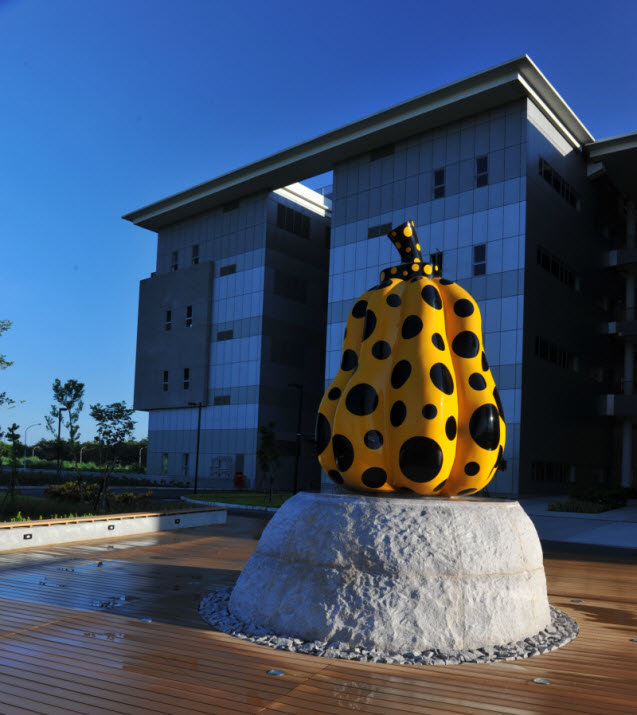 旅程尾聲,遊逛屏東農業科技園區,佇立著國際藝術家草間彌生作品,草間彌生為其取名「我的未來坐在岩石上」,旅人可以近距離欣賞這只高5.2公尺、色澤鮮麗的南瓜,也因為這個公共藝術讓農科成為熱門朝聖景點。