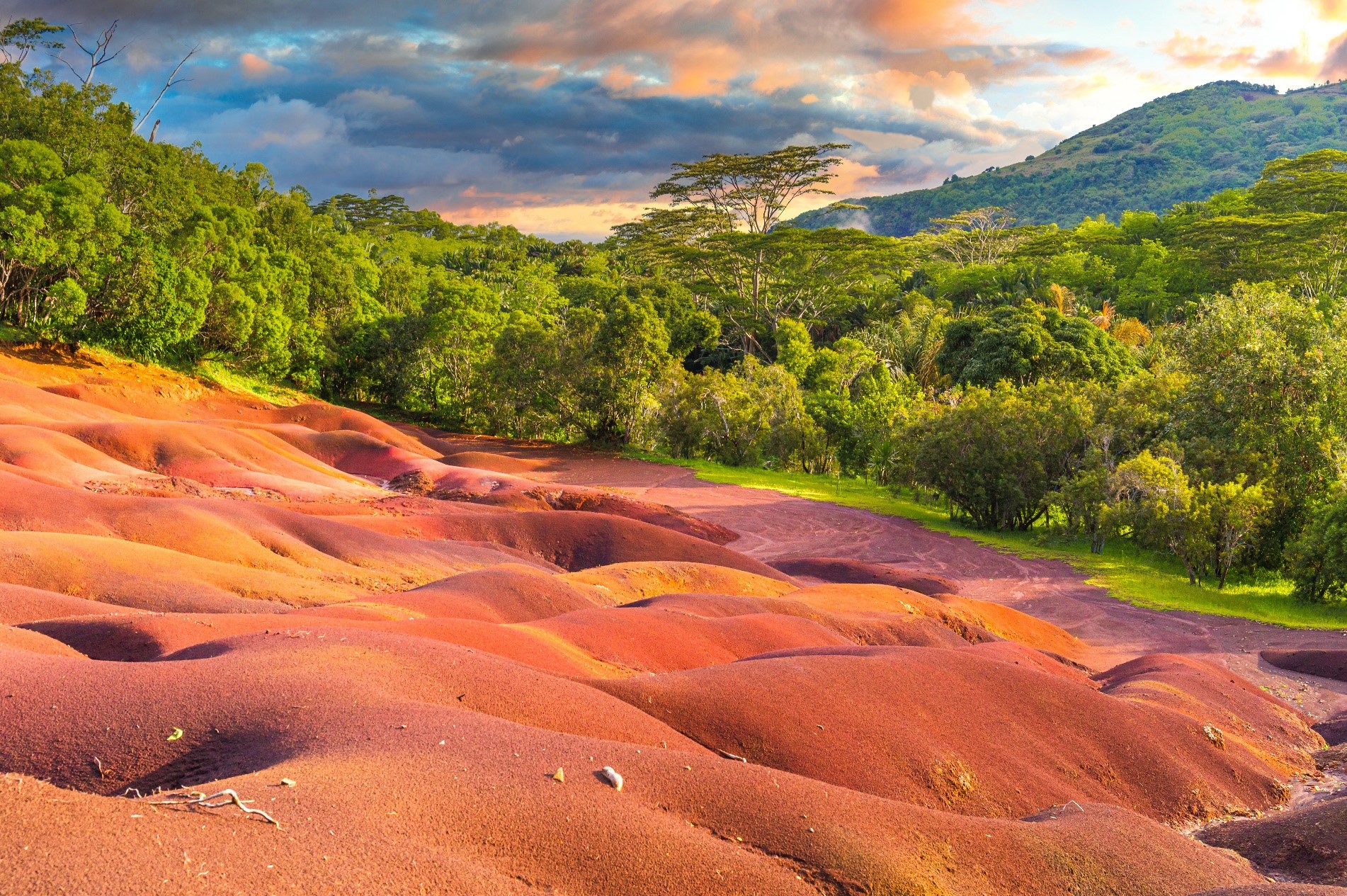 世界奇景之一,同時擁有七種不同顏色的泥土。因火山噴發出來後,礦物質沉澱與氧化作用,呈現出紅、紫、藍、黃、橙、棕等七種絢麗色彩,是模里西斯的地標之一。