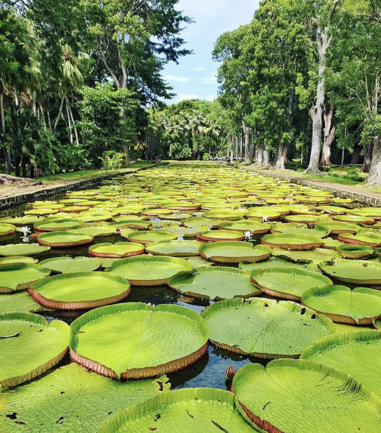 模里西斯最古老、規模最大的熱帶植物園,是 印度洋地區的植物王國,以百年巨木、稀有植物聞名,其中最為知名的是「巨型睡蓮池」,葉片1.5 公尺以上的巨型亞馬遜睡蓮倒影尤為壯觀。