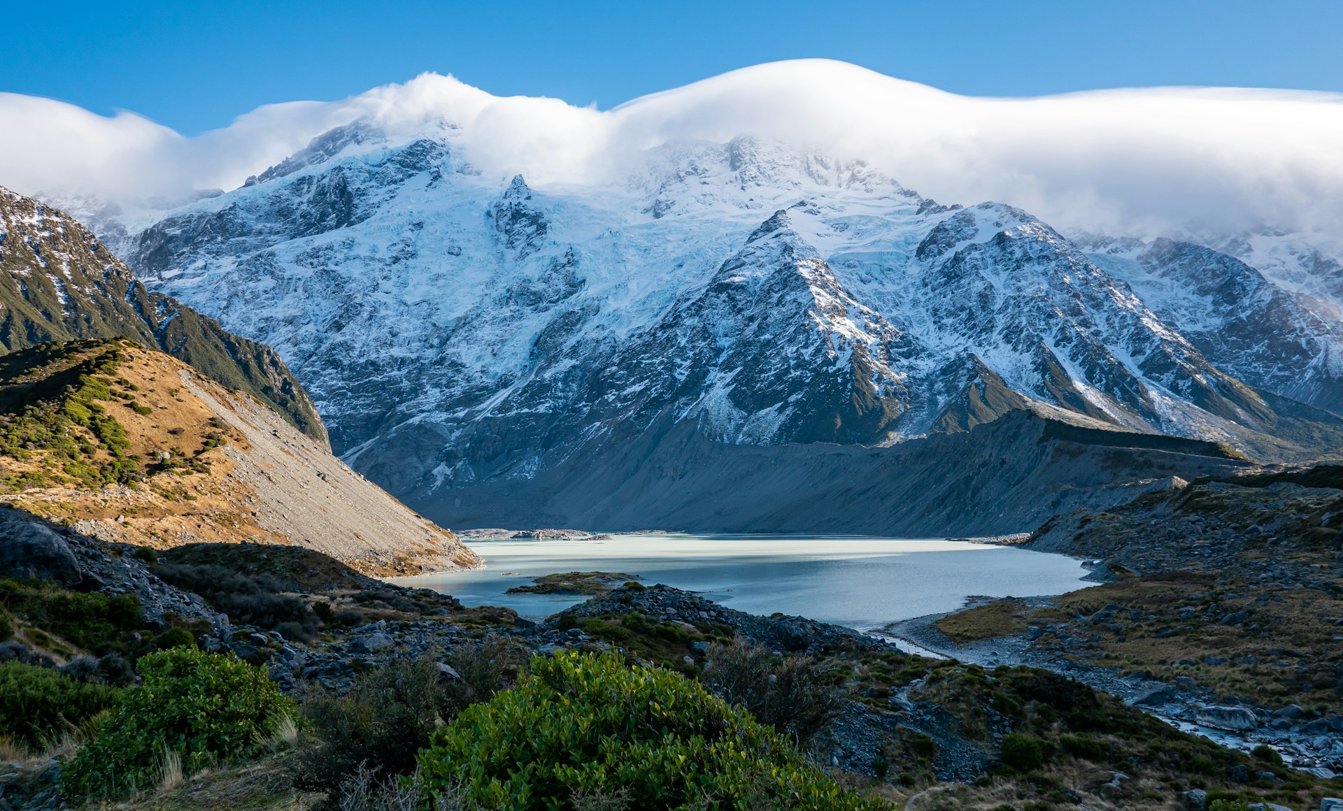 紐西蘭南島最高峰──庫克山(Aoraki / Mount Cook),如同大地的守護者,聳立於南阿爾卑斯山脈中。巍峨雪峰覆蓋終年冰雪,氣勢磅礡,吸引無數登山家與旅人慕名而來。